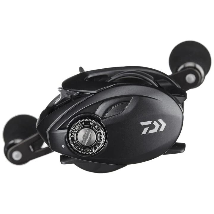 Daiwa’s® Magforce system has been reengineered to cater directly to pitching and flipping, altering the magnetic pressure as the spool starts to slow. While on a low trajectory path, this allows the lure to get maximum distance and a more silent entry. Standard brakes will cause a lure to take an upswing at the end of a cast due to the added braking pressure, limiting distance and creating a louder entry, with the lure hitting the water with a splash. A newly designed low mass A7075 aluminum spool, T-Wing System (TWS), Zero Adjustor, 100mm swept handle and aluminum frame and sideplate all combine to make this truly one of the most purpose driven reels ever designed.