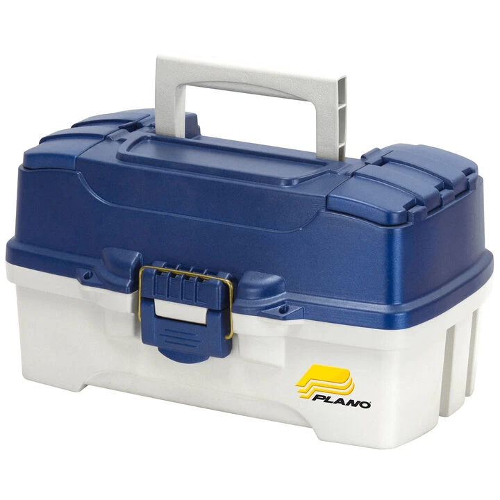This basic Plano® tackle box is a standard in the industry. A sturdy fold-down handle makes the case easy to carry and store while the brass bailed latch tightly secures the lid, keeping items protected and organized.