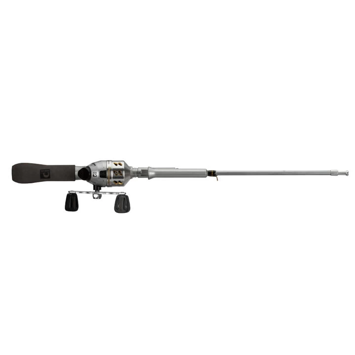 This tiny set up features a quality tiny spincast reel with a 2.8:1 gear ratio, double anodized aluminum nose cone, aluminum handle with dual knobs, and pre-spooled with 3 lb. monofilament. The 20″ inline Tangle-FREEâ„¢ rod retracts down to 14.5″ for easy storage. It’s perfect for a quick cast anywhere, anytime!