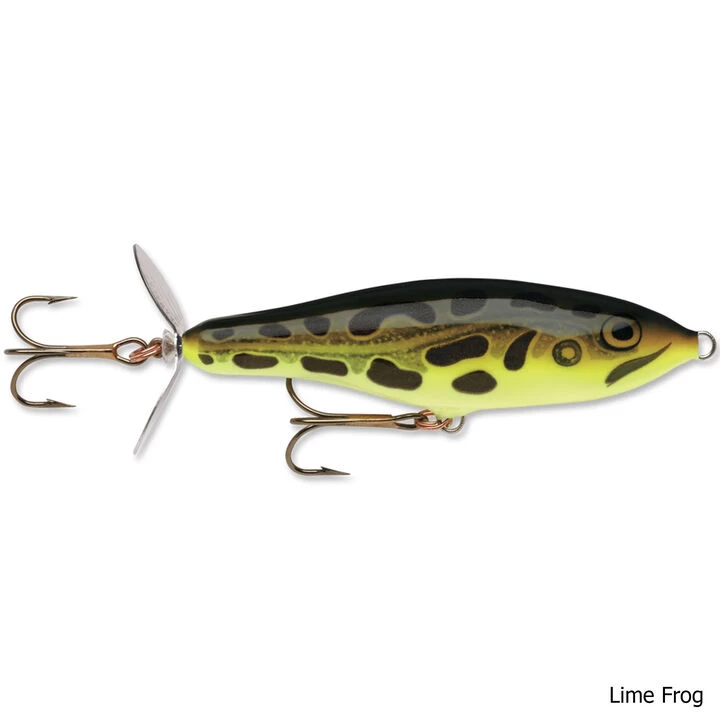 A natural member of the Rapala® topwater arsenal, the Skitter Prop® is a balsa wood bait featuring a water-churning stainless steel propeller that sputters like a wounded baitfish, dives, and rolls with a snap retrieve, capturing the attention of predators below.
