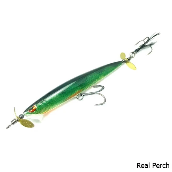 Designed to be the ultimate spy bait, the Spin John 80 comes with swivels incorporated into the line tie and the back-hook hanger. These swivels help the bait rock back and forth on the retrieve when the bait is falling. The swivel on the back of the bait makes it harder for a fish to get leverage on the bait and throw the hook out of its mouth.
